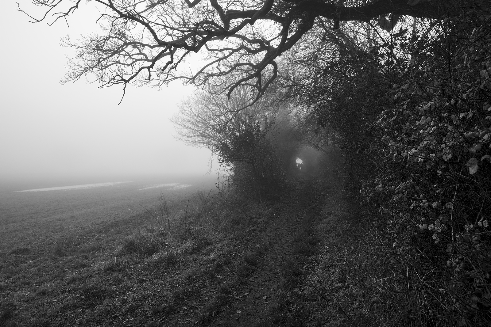 Fog rolled in from the sea and shrouded the hills along the South Downs over three consecutive days this week. This bought a certain eery drama to the woodland and surrounding area that compelled me to go out with my camera as dusk was approaching.